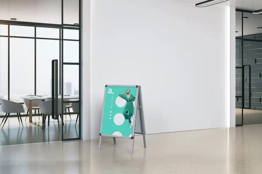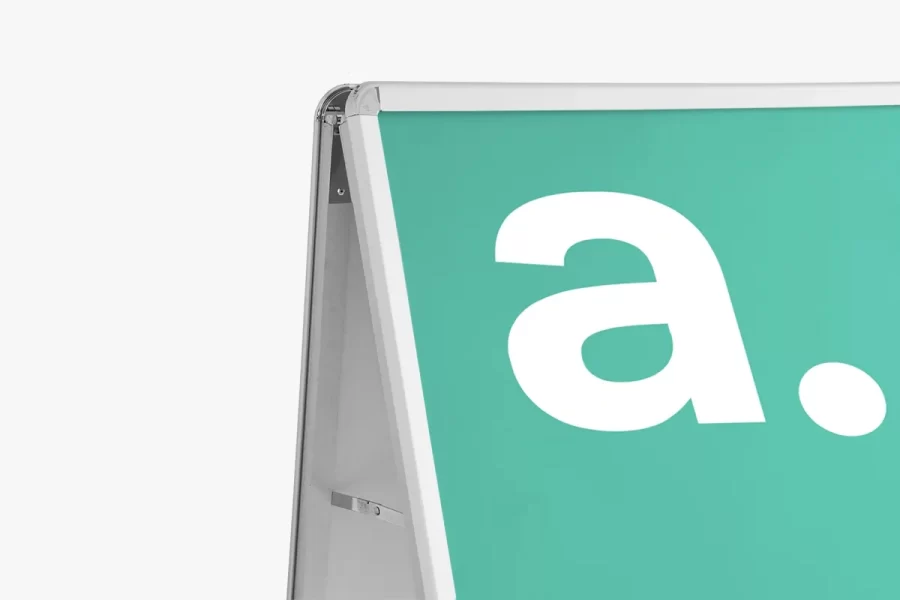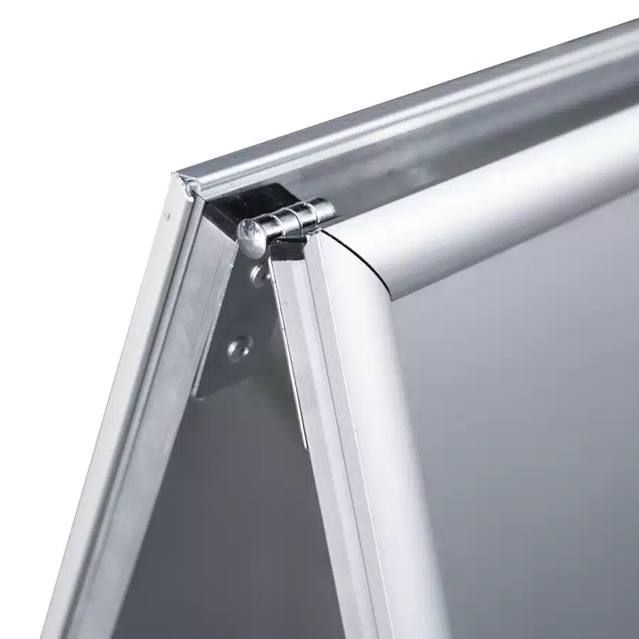 adBoard Snap on logolla varustettu A-teline , joka mahdollistaa helpot ja nopeat graafiset muutokset innovatiivisen OWZ-tekniikan (Open-Insert-Close) ansiosta. Anodisoidusta alumiinista valmistettu teline takaa kestävyyden ja ammattimaisen ilmeen mainoksellesi.