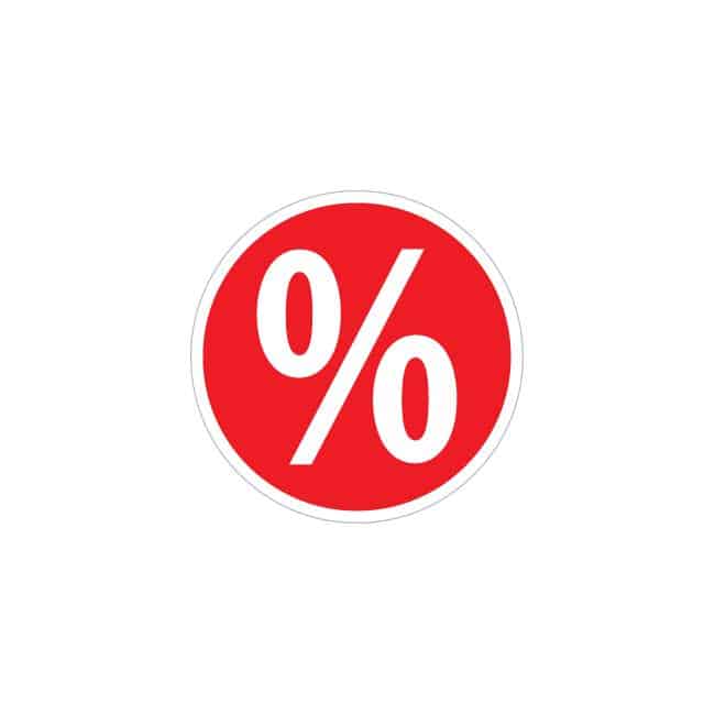 ”%”-alennusmerkintätarra, neliö / pyöreä