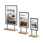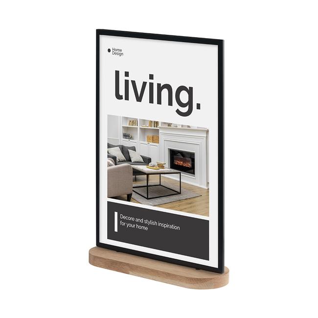 ”Kudera” -julisteteline on tyylikäs mainosnäyttö tarjousten ja tietojen esittelyyn. Aseta metallista ja puusta valmistettu teline mainospöydille, myyntitiskeille tai näyteikkunoihin. Telineessä on tukeva soikea jalka, joka takaa vakauden.