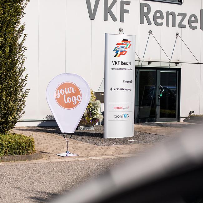 Mainoslippu ”Pin Flag” on täydellinen ratkaisu huomion herättämiseen ja vaikkapa kohtaamispaikan selkeään merkitsemiseen. Olipa kyseessä messut, tapahtumat, tai kaupan edustat – tämä merkki kiinnittää taatusti huomion. Vankan rakenteensa ansiosta se sopii sekä sisä- että ulkokäyttöön. Erityisen huomionarvoinen ominaisuus on integroitu pyörivä nivel, jonka ansiosta lippu pyörii tuulessa ja herättää entistä enemmän huomiota. Tällä sijaintimerkillä teet vahvan visuaalisen vaikutelman.