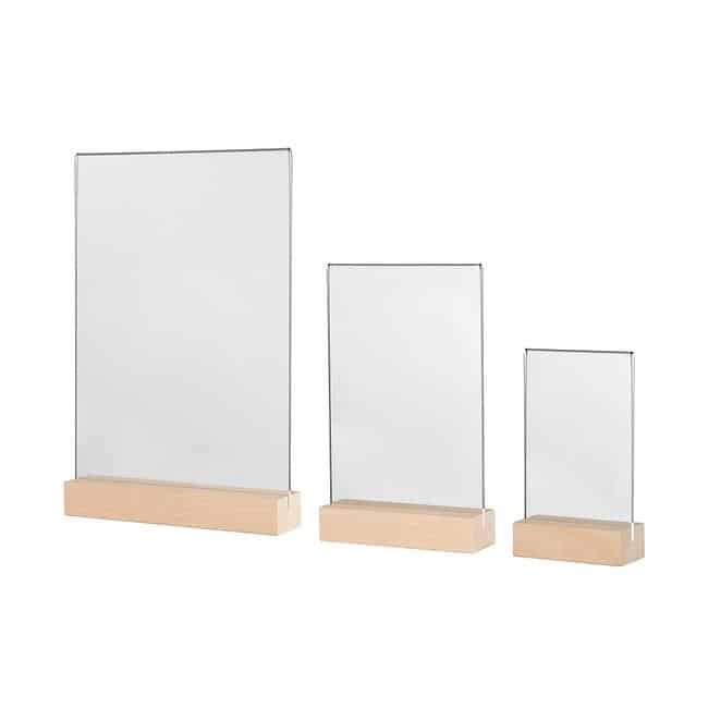 ”Beech” -menuteline on ihanteellinen pöytäesittelytuote ravintola-alalle. Ajattoman muotoilunsa ansiosta se sopii kaikkiin sisustuksiin ja tuo tyylikkään lisän jokaiseen pöytään. Voit valita tavallisen akryylin tai kierrätetyn akryylin, joka koostuu jopa 90 prosentista teollisuusjätteestä kierrätetystä raaka-aineesta ja tarjoaa saman korkealaatuisen ulkonäön ja läpinäkyvyyden kuin vakiomalli. Pieni logo osoittaa, että materiaali on kierrätettyä, ja korostaa tuotteen kestävyyttä.