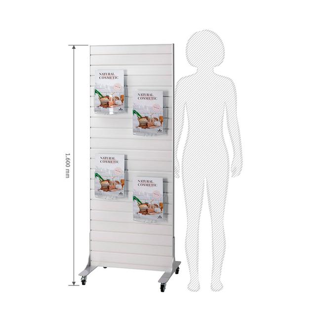 Monipuolisten käyttömahdollisuuksiensa ansiosta mobiili FlexiSlot®-näyttöteline ”Style” sopii erinomaisesti käytettäväksi vähittäiskaupoissa, messuilla tai näyttelyissä. Sitä voidaan käyttää tuotteiden esittelyalueena, infotelineenä tai jopa tilanjakajana.