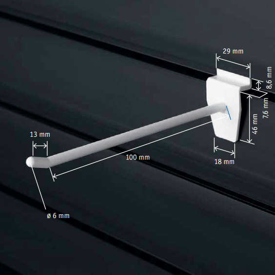Piikki on helppo ripustaa slatwall-seinään tai irrottaa siitä mistä tahansa korkeudesta. Esittele kevyet tuotteet ripustamalla ne tällä tavalla.