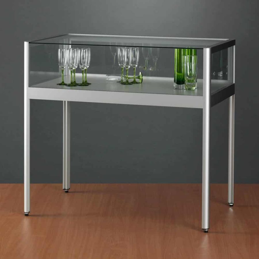 Pöytävitriini ”New” on tyylikäs. Hopeanväriset, pyöristetyt profiilit ja särkymätön turvalasi luovat korkealaatuisen ilmeen.