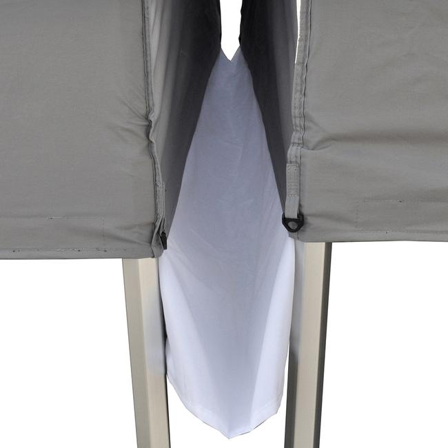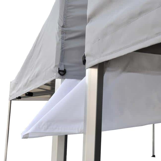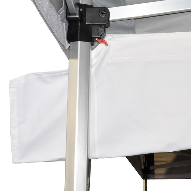 ”Event Classic”-mainosteltan sadevesikouru takaa kuivat kulkuyhteydet telttojen välillä. Se yhdistää kaksi telttaa nopeasti ja luotettavasti sekä suojaa näyttelytilaasi ja kävijöitä sateelta. Se on helppo asentaa tarranauhalla – työkaluja ei tarvita. Tämä säästää aikaa ja vaivaa.