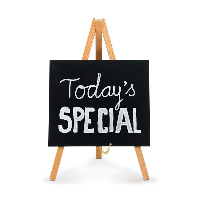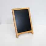 Kiinteä puinen teline, varustettu liitutaululla, sisä- ja ulkokäyttöön, kirjoitettavissa liidulla / liitutaulutusseilla.